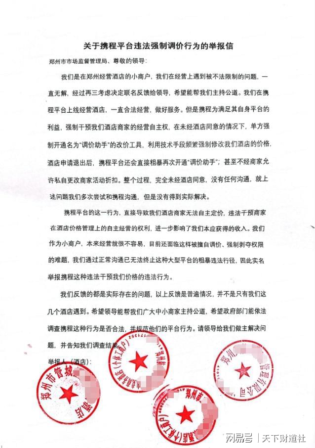 郑州十余位酒店经营者联名举报,“调价助手”功能未经许可擅自下调酒店定价10-20元,部分酒店一天内被自动调价5次,手动关闭仍强制重启,商家多次申请关闭遭驳回。