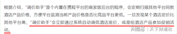此次监管介入,源于携程备受争议的“调价助手”功能。该功能会定期扫描其他平台同款酒店产品价格,并采取相应的行动。包括自动调低酒店底价,或是给酒店产品参加促销活动等。