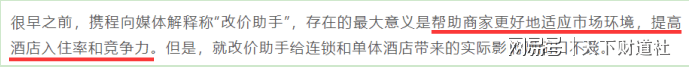 携程称该功能是“帮助酒店提升竞争力”,从部分消费者的角度来看,或许获得了某种实惠,但从有些商家的角度来看,实际上限制或影响了其定价自主权。