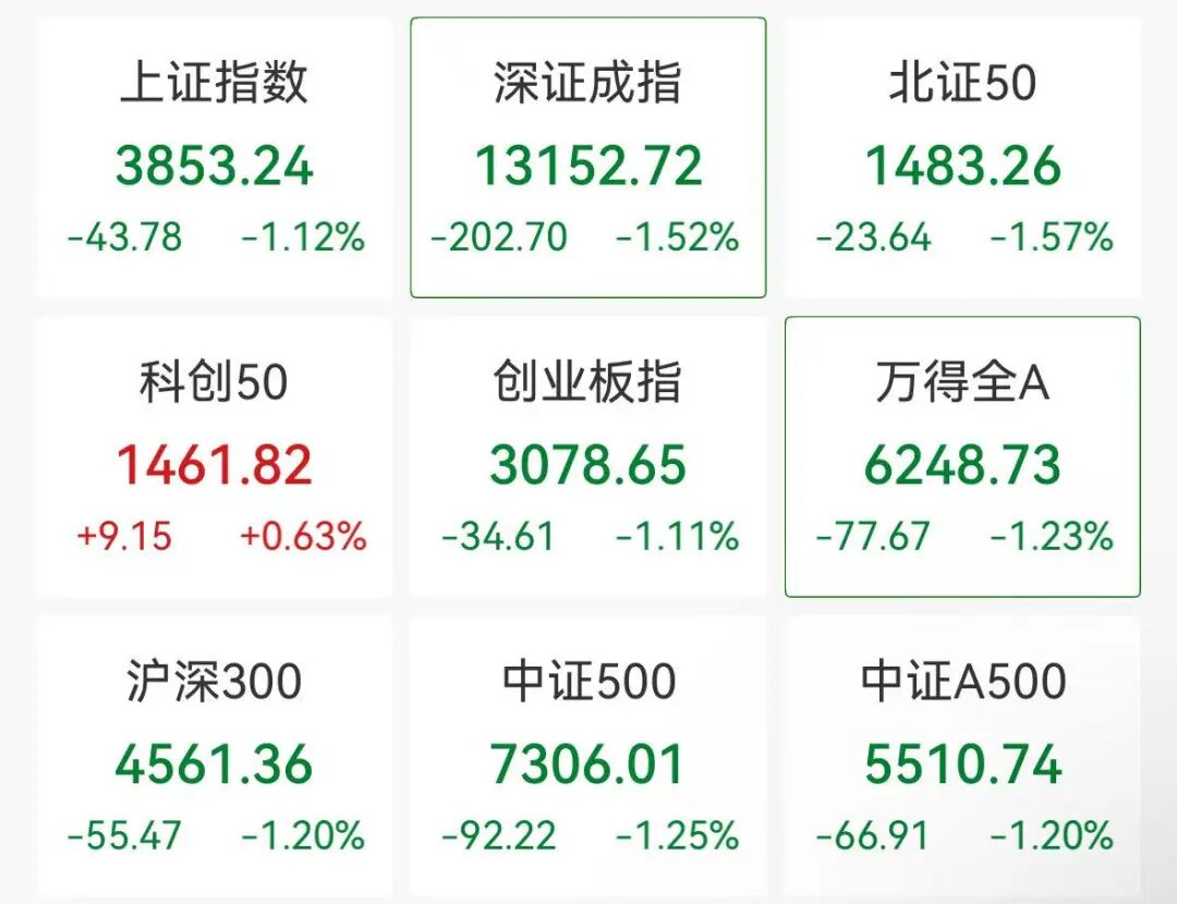 10月13日,A股三大指数大幅低开。截至9:45,跌幅均有所收窄,沪指跌1.12%,深成指跌1.52%,创业板指跌1.11%,板块方面,消费电子、算力硬件等板块跌幅居前。
