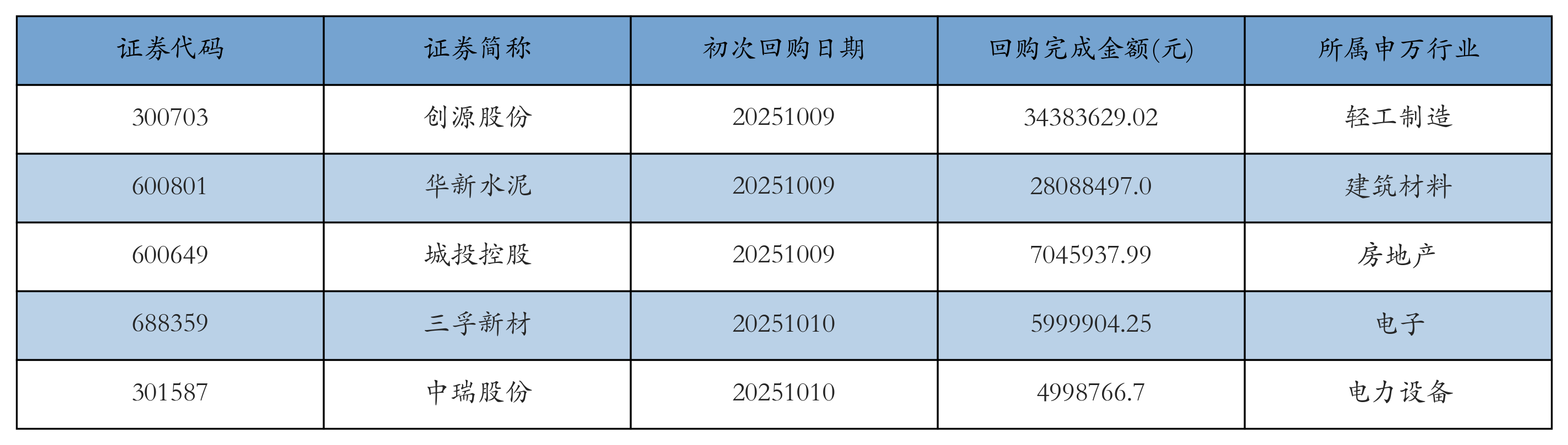上周共有7条开始执行回购公告,其中执行金额最多的5条公告为: