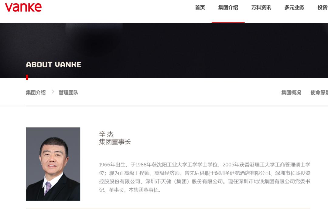 辛杰是万科与深圳地铁集团的“双料”董事长。此前,除了担任万科董事、董事长之外,辛杰还是深圳地铁集团的党委书记、董事长。