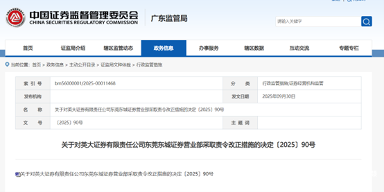 9月30日,深圳证监局发布了一则行政监管措施,对英大证券采取责令改正措施的决定。据悉,英大证券存在员工管理不到位、新媒体管理内部控制不完善等问题。这是一次直接指向英大证券的“点名”。