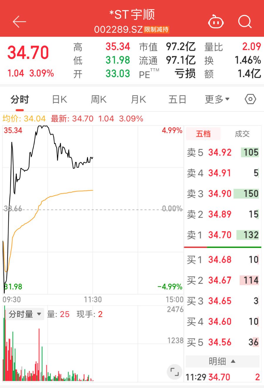 10月13日,年内涨幅曾超10倍的大牛股*ST宇顺(002289.SZ)股价剧烈震荡,早盘一度跌停,但随后快速拉升触及涨停,盘中上演“地天板”,截至午间收盘报34.7元/股,涨幅3.09%。