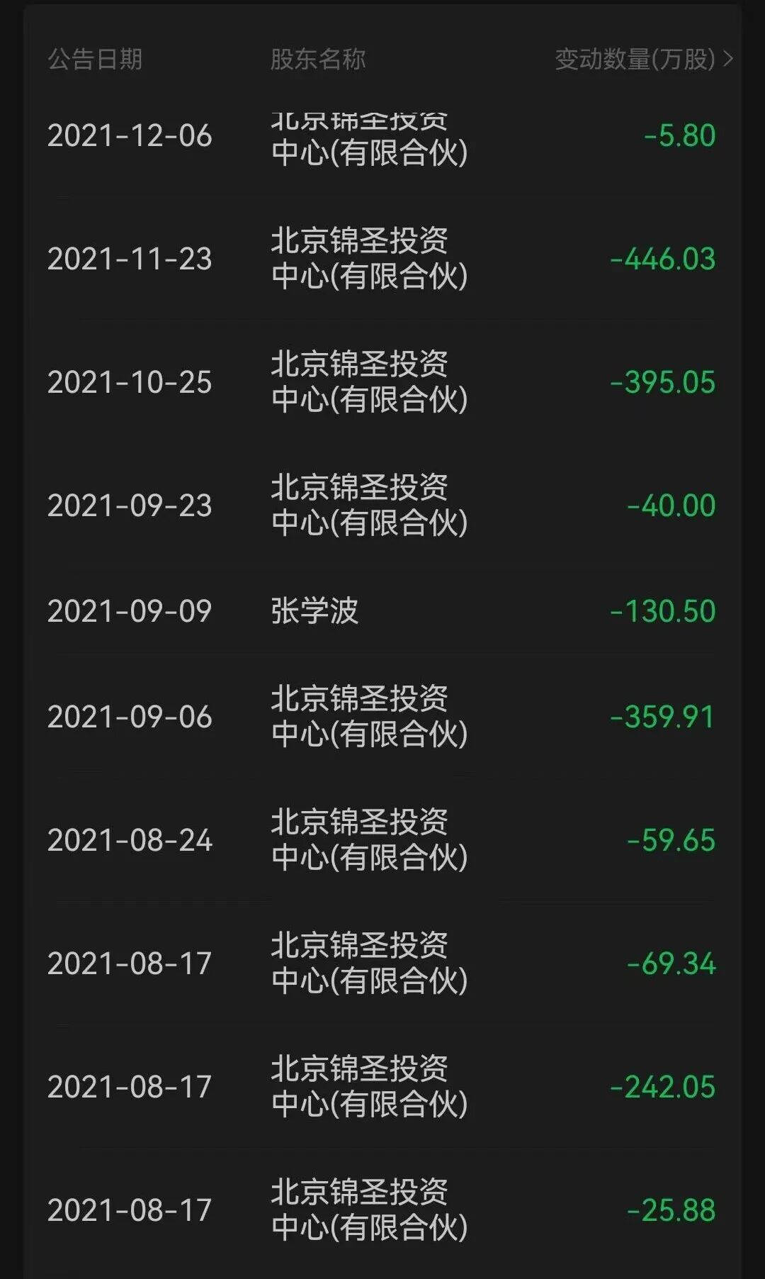 图:金城医药股东部分减持情况