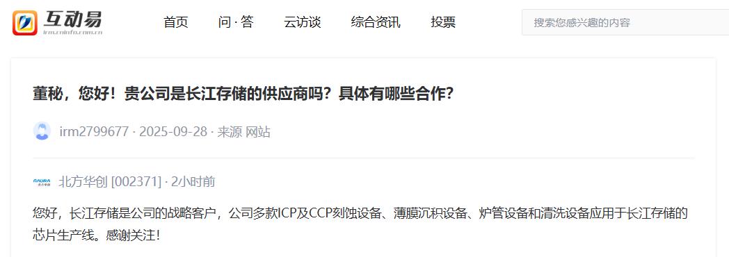 【V观财报丨北方华创:多款设备应用于长江存储芯片生产线】北方华创13日通过深交所互动易平台回答投资者提问称,长江存储是公司的战略客户,公司多款ICP及CCP刻蚀设备、薄膜沉积设备、炉管设备和清洗设备应用于长江存储的芯片生产线。(中新经纬APP)
