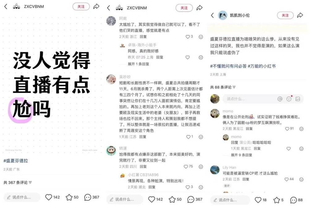 而红果在直播策划中没有把握住对主创团队的边界感,进而导致了演员也拿捏不住“演”和“真”的分寸感。