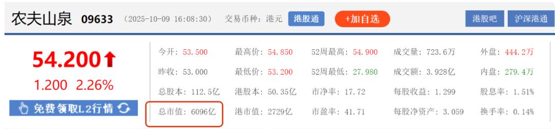 除饮用水和茶饮料业务增长之外,农夫山泉同期其他饮料业务也都呈现正增长,功能饮料产品上半年营收为28.98亿元,同比增长13.6%;果汁饮料产品营收为25.64亿元,同比增长21.3%。从上半年农夫山泉的业绩表现来看,基本摆脱了负面舆情的困扰。农夫山泉股价也在年内暴涨了63%,最新市值突破6000亿港元。