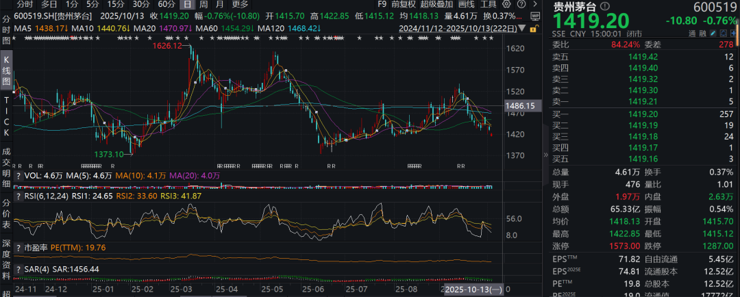 在大牛市之中,茅台股价非但没有上涨,反而今年跌幅超5%。