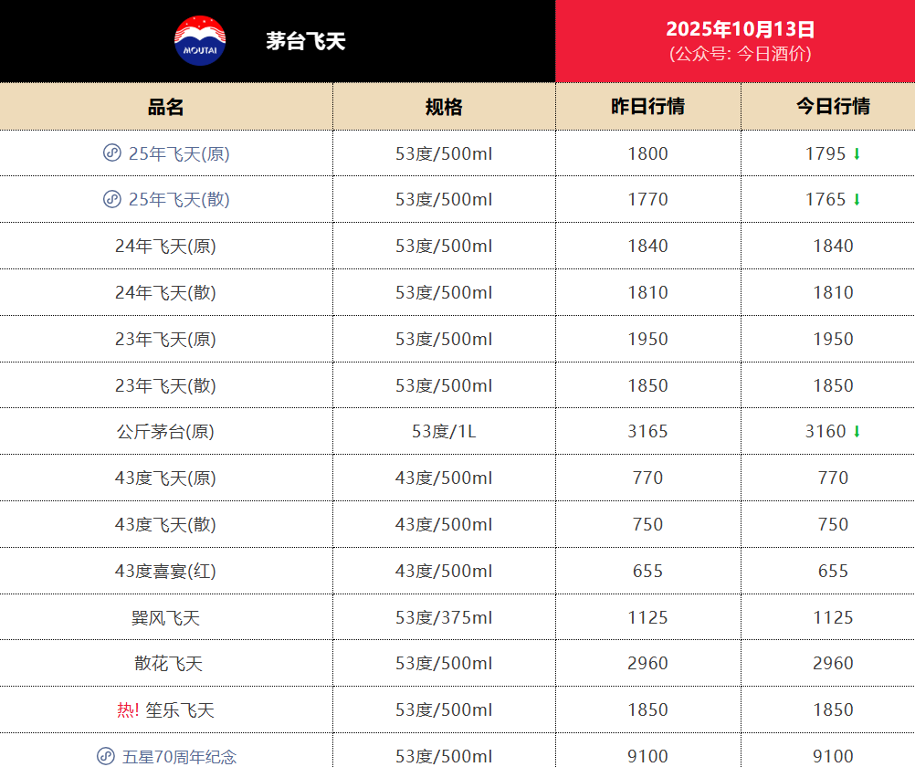 据今日酒价,茅台散飞价格还是没有止住,依旧在下跌之中,目前价格只有1765元。
