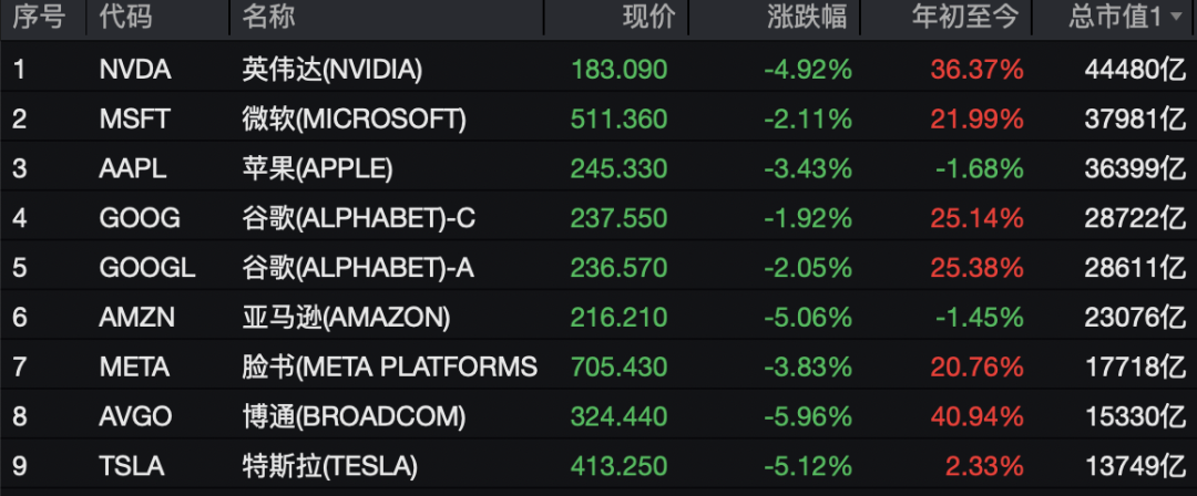 闻听此言,美股三大股指集体下挫,纳指单日暴跌3.56%,七大科技巨头一夜蒸发5.5万亿元市值,直接来了个“黑色星期五”。