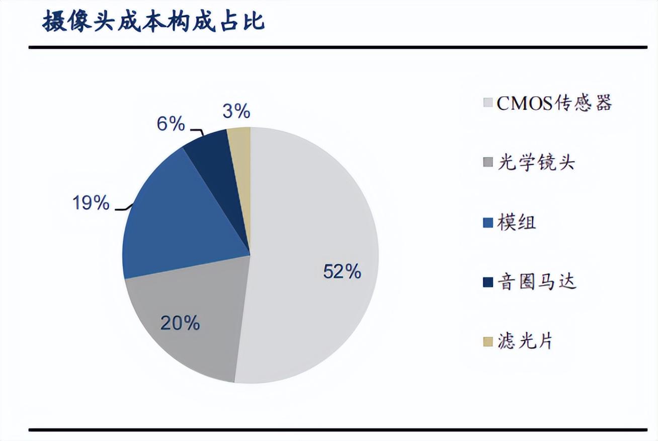 CMOS图像传感器在摄像头中扮演光电信号转换的作用,以便让计算机或其他设备处理和存储。其成本占比超50%,是摄像头的“心脏”,性能好坏直接决定了成像效果的优劣。
