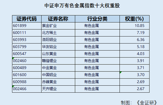 在基金市场中,中证申万有色金属指数从沪深市场申万有色金属及非金属材料行业中选取50只上市公司证券作为指数样本,以反映沪深市场有色金属行业上市公司证券的整体表现。