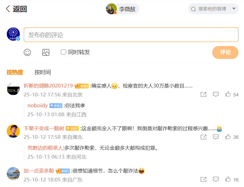 从李微敖披露的信息来看,案件涉及的金额远低于社会公众对于“敲诈勒索”罪的普遍印象。