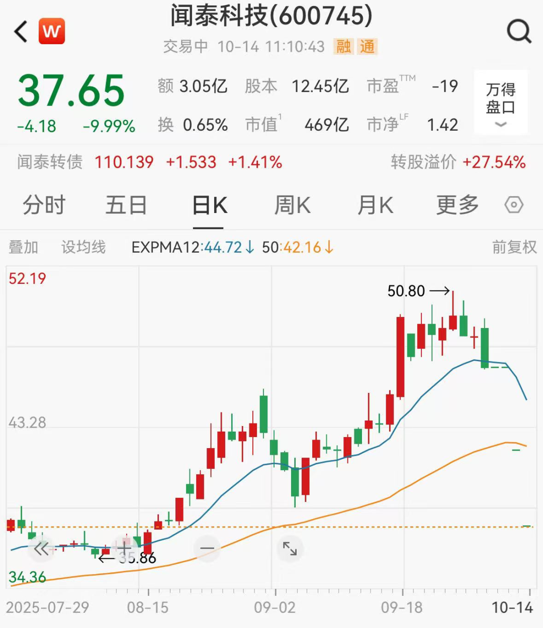 今日,闻泰科技开盘再度跌停,报37.65元/股。