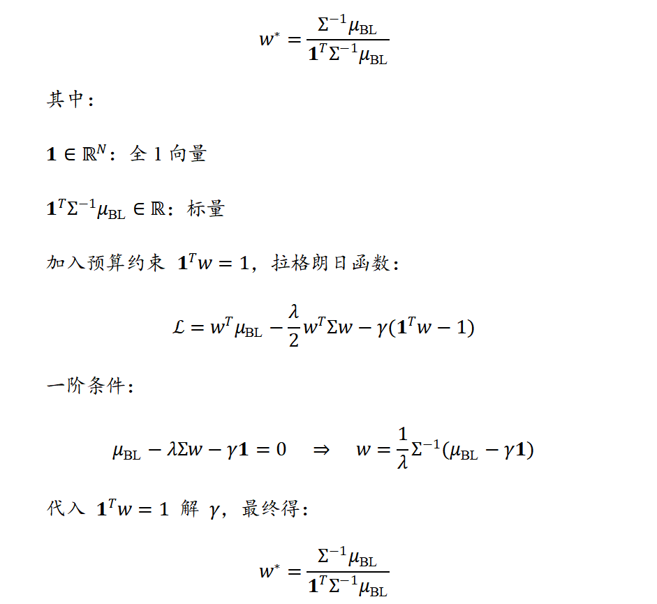 Black-Litterman(BL)模型是一种在资产配置中广泛应用的贝叶斯组合优化模型,由Fischer Black与Robert Litterman于1990年代初在高盛公司任职期间提出,其核心思想在于通过贝叶斯框架将市场均衡隐含收益(作为先验分布)与投资者主观观点(作为似然函数)进行系统性融合,从而生成稳健的后验预期收益估计,以克服传统均值-方差优化模型对输入收益高度敏感所导致的组合极端化与不稳定性问题;该模型不仅尊重市场整体结构所蕴含的信息,还允许投资者以结构化方式(如相对或绝对收益观点及其置信水平)注入主动判断,最终输出兼具市场中性与观点驱动特性的优化资产配置,在全球养老基金、主权财富基金及多资产量化策略中被广泛采用,成为现代投资组合理论从理论走向实践的重要桥梁。