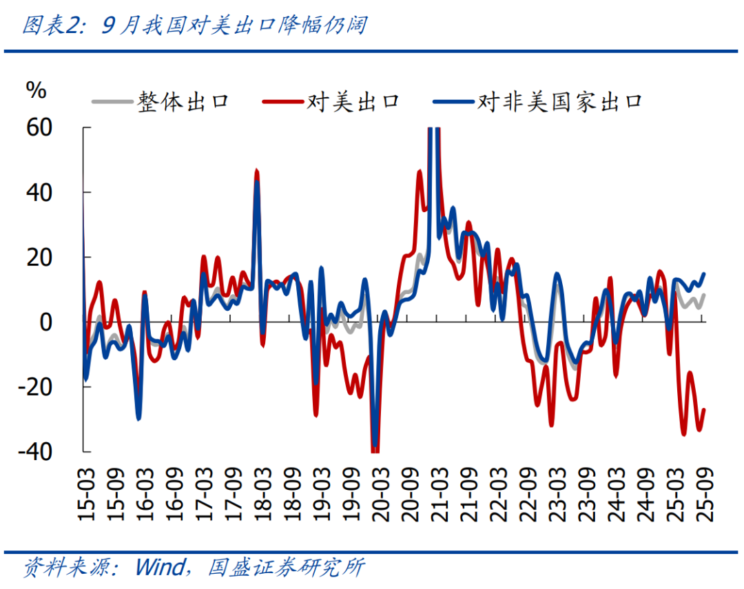 核心观点:9月出口增速再度回升、创近半年新高,剔除低基数后与4-8月接近,持续体现了我国出口的强韧性;9月出口高增带动三季度出口增速至6.5%、略高于一二季度,这将进一步支撑三季度GDP增速和全年“保5%”;需注意的是,9月进口同比大升至7.4%、创近一年半来新高,季度同比也从连续三个季度负增后首次转正。展望四季度出口,预计同比将有所回落、但大概率延续为正,指向4月关税以来我国出口整体偏强、年中市场普遍预期出口转负的情形应不会出现。继续提示:中美双方并未关闭谈判窗口,关税应难以实质性大幅加码,紧盯未来几周变化、以及10月底可能的中美最高层会晤。