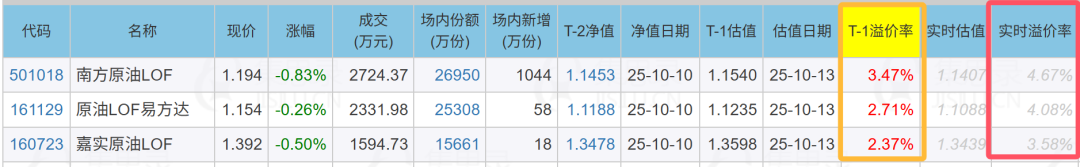 原油LOF易方达(161129)、它近几天的溢价率也是3-4%之间。