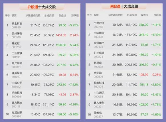 4、北向资金共成交3475.02亿元,占两市总成交额的13.49%——