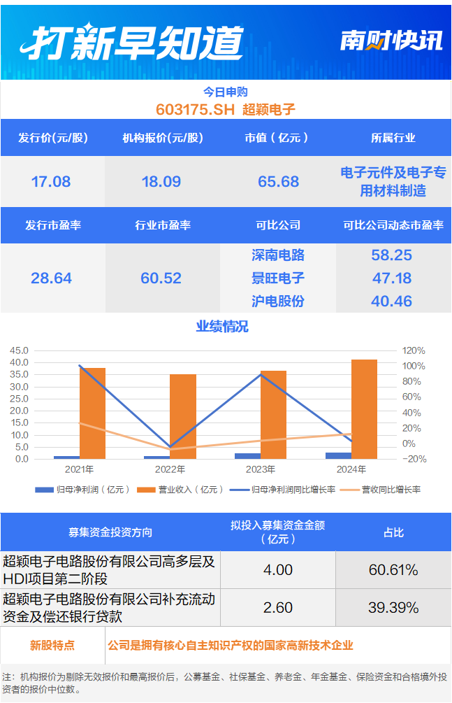 10月15日,有两只新股申购,为北交所的泰凯英(920020.BJ)、上交所的超颖电子(603175.SH)。