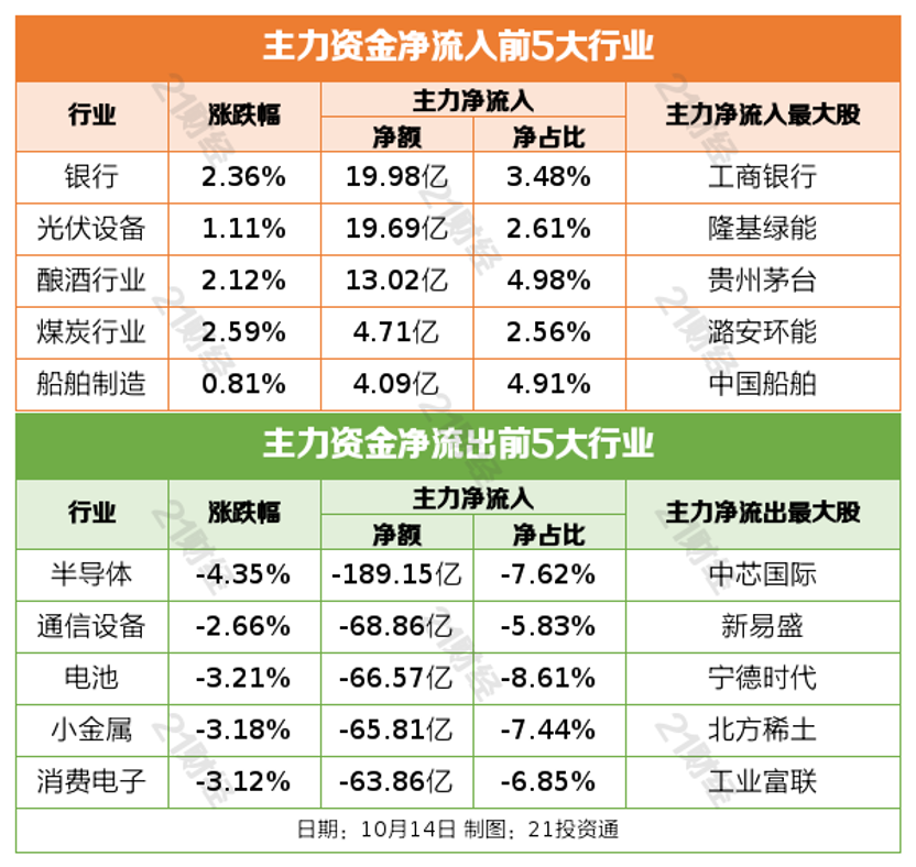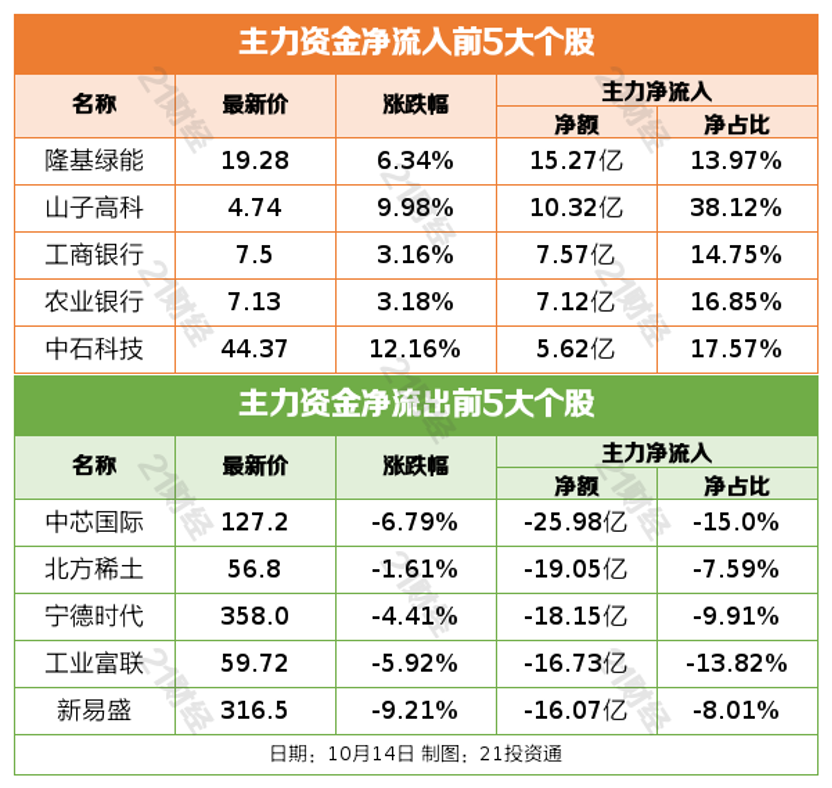 10月14日,市场全天震荡调整,创业板指、科创50指数盘中双双跌超4%。截至收盘,沪指跌0.62%,深成指跌2.54%,创业板指跌3.99%。沪深两市成交额2.58万亿,较上一个交易日放量2215亿。