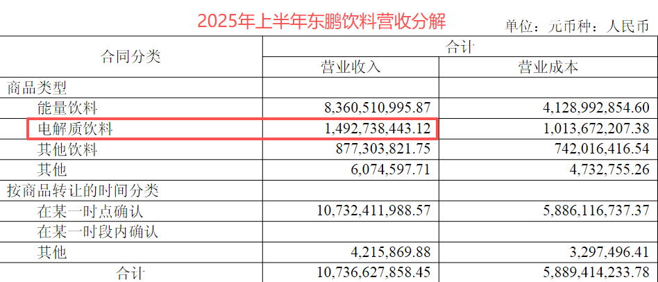 这一策略迅速见效,2025年上半年,东鹏补水啦所在的电解质饮料业务实现14.93亿元收入,同比增长213.71%,半年就追上了2024年全年的销售额,营收占比也提升到27.53%。
