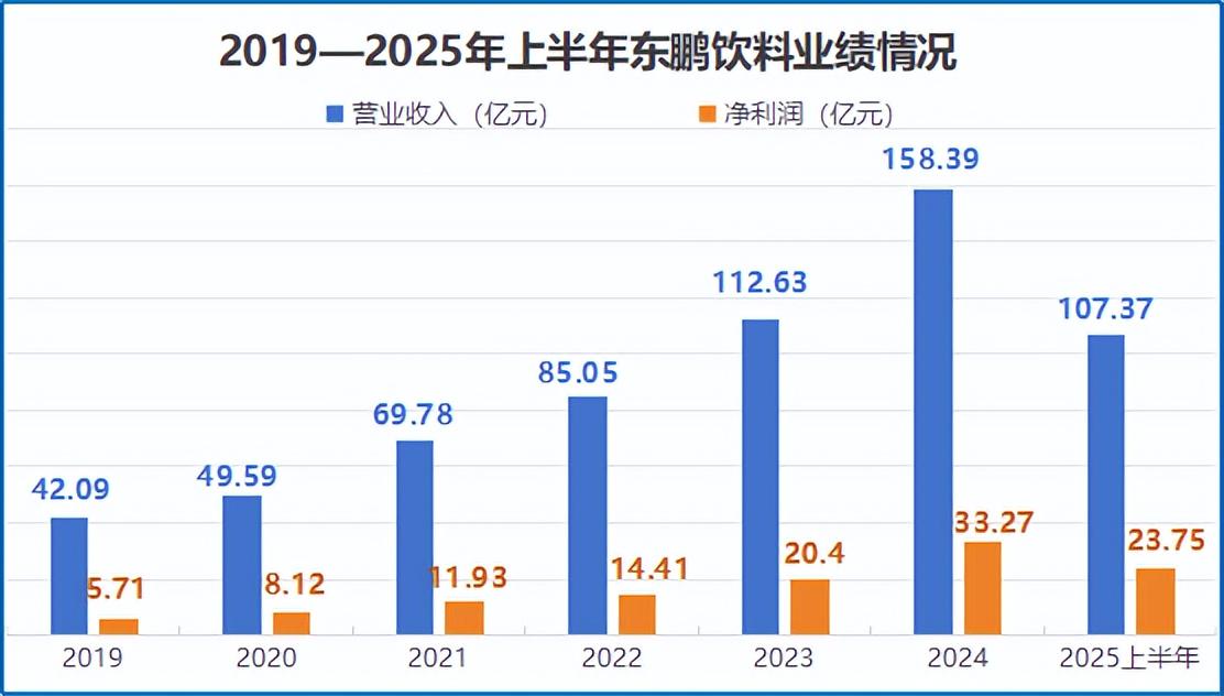 首先,不可否认,东鹏饮料确实靠东鹏特饮打了一场漂亮的“翻身仗”:2019-2024年,业绩年年正增长,2024年营收达158亿元、净利润也有33亿元。