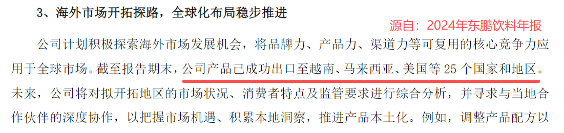 其实,东鹏饮料的全球化布局早有铺垫,在2021年上市后,其便通过香港子公司试水东南亚、北美出口。