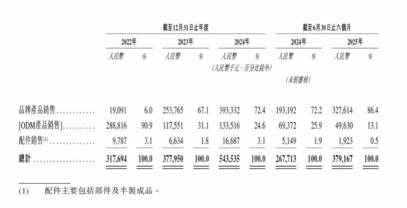 净利率缘何持续下滑?从OEM代工逐渐转向自主品牌或许是其在毛利率持续上升的同时,净利润率反而持续下滑的主要原因,招股书数据显示,2022年公司品牌产品销售和ODM产品销售作战收入比例分别为6.0%与90.9%;而到2025上半年,自有品牌的销售比例已经变化达到86.4%。
