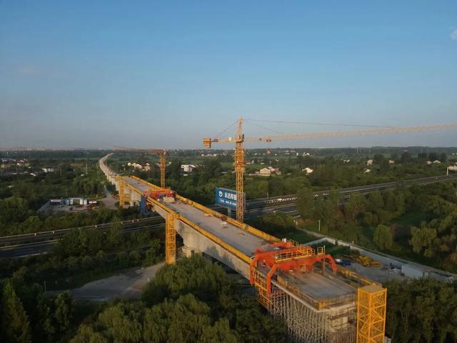 沪宁合高铁南京特大桥跨滁河斜拉桥主塔封顶。来源:上海发布