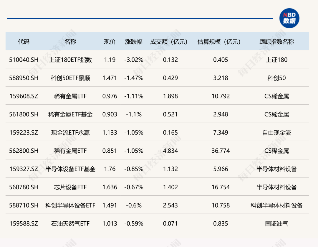 ETF今日收评 | 中证A100指数ETF、汽车零部件ETF等涨超3%,上证180ETF指数跌超3% etf今日收评 etf今日收盘行情