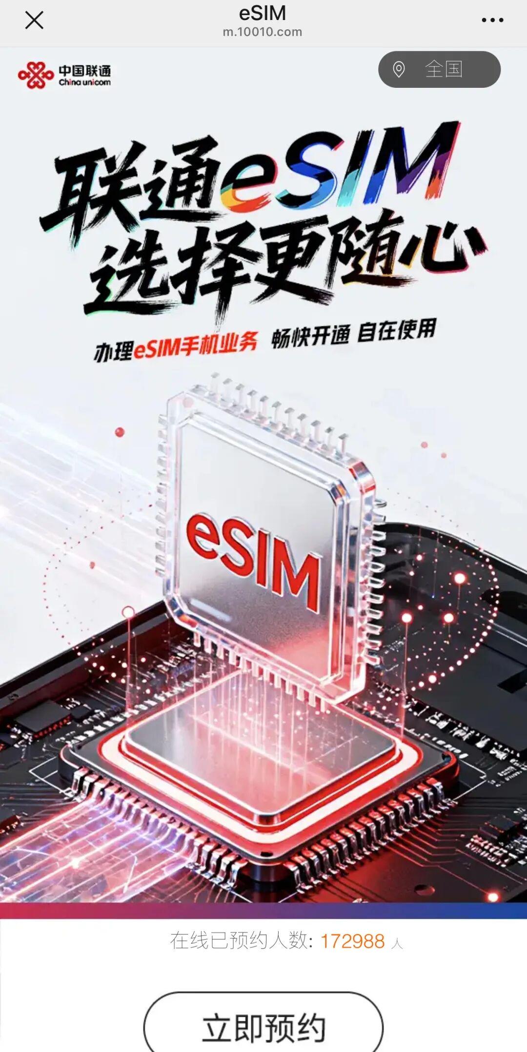 10月13日,三大运营商相继在官网宣布eSIM手机业务落地,根据业务办理须知,目前中国移动和中国电信暂不开放线上方式办理eSIM手机业务,用户需要前往各地营业厅线下办理,具体可登录官网查询办理网点信息;中国联通eSIM业务可通过网上预约办理,其预约通道页面数据显示,截至发稿前,在线预约人数已经超过17万人,这一数字仍在持续增长。