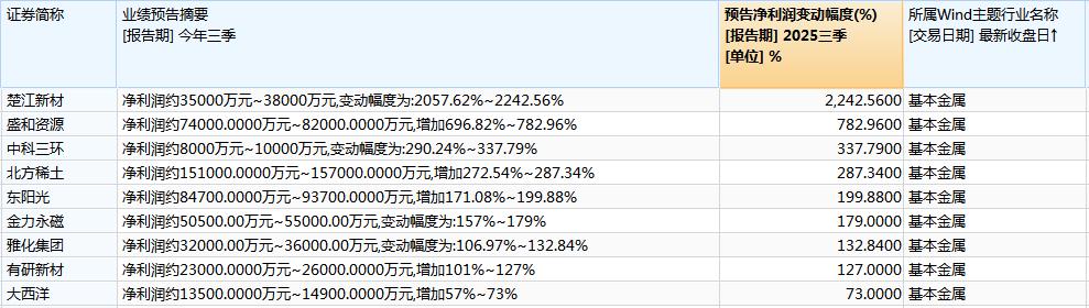 除了上述公司外,包括盛和资源、远大智能、利民股份、晨光生物、中科三环、北方稀土等在内的多家公司预计前三季度净利润同比均实现较明显增长。