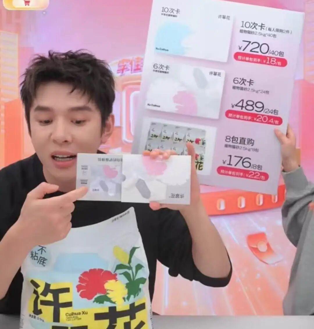 肉食罐头36罐打包销售、猫粮10袋10袋地卖,不过,还是一袋2.5kg猫砂直接拿下销冠title,一次性售卖的份量是40袋。经济下行护肤品不好卖,但什么赛道火爆都可以从李佳琦直播间了解,比如宠物和母婴。