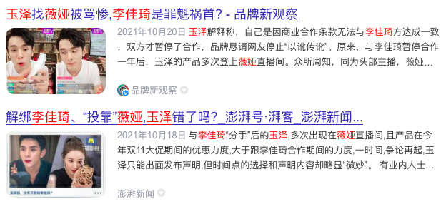 1.开菠萝财经,《解绑李佳琦、“投靠”薇娅,玉泽错了吗?》,2021.10