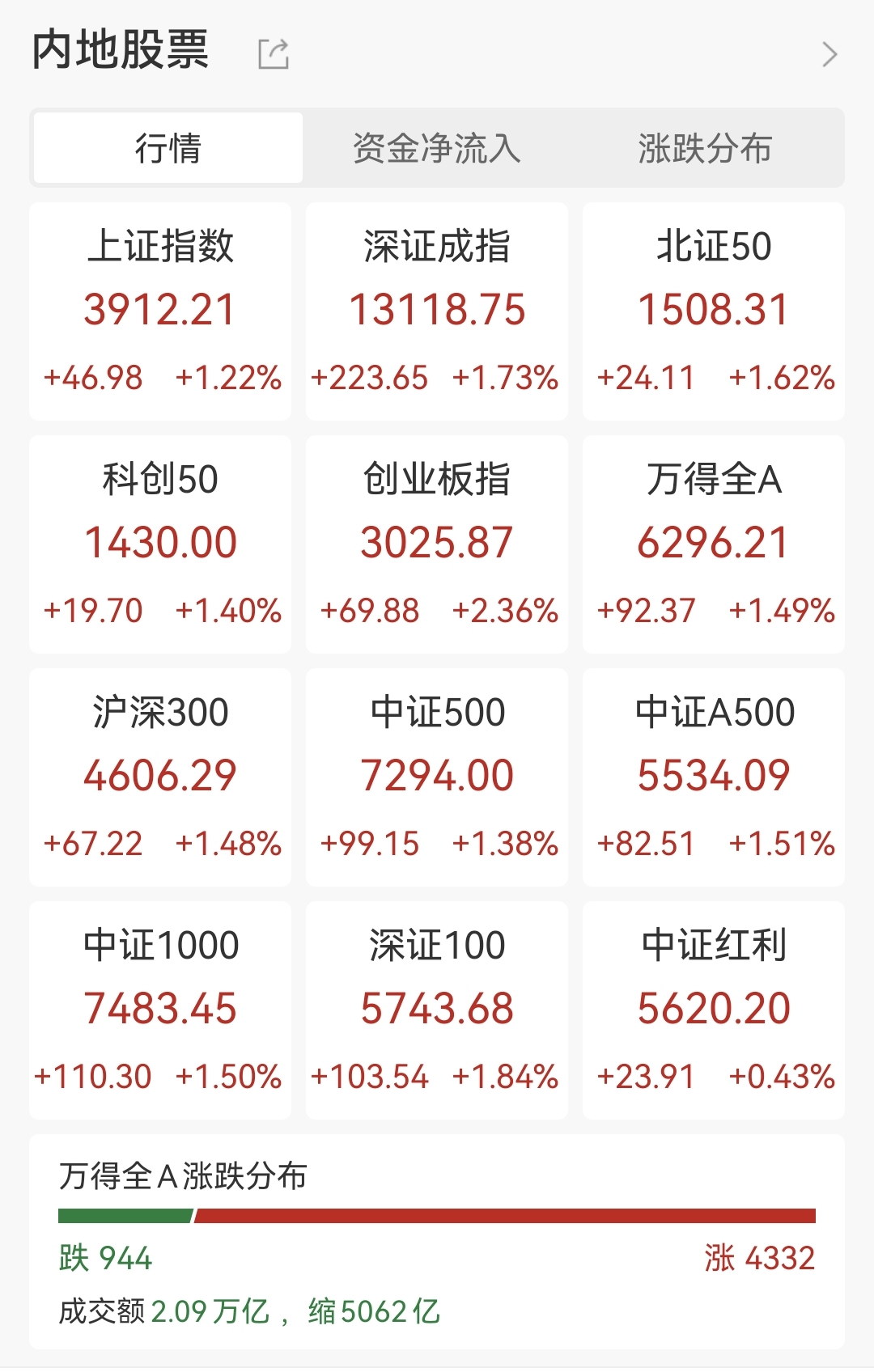 10月15日,A股探底回升,截至收盘,沪指涨1.22%重回3900点,深成指涨1.73%,创业板指涨2.36%。沪深两市成交额2.07万亿,较上一个交易日缩量5034亿。