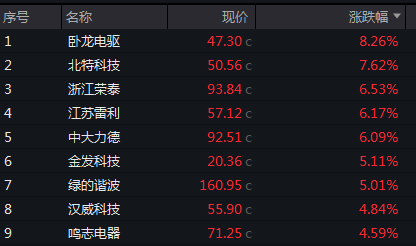 宇树机器人概念股全线大涨,卧龙电驱涨超8%,北特科技、浙江荣泰等涨超5%。