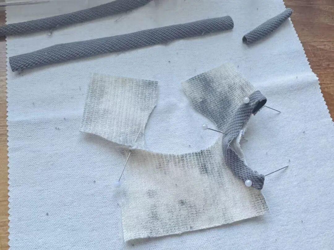 小敏想在拼贴布料时花点心思:领口和袖口处都准备缝上撞色布条,模仿叠穿效果;下摆也设计了层次——她特意买了半码粉色星星网纱,花了十块钱,正好可以缀在衣服底部。
