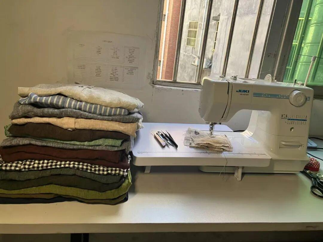 ▲ 毛毛的缝纫机与部分成品。图 / 访谈者提供