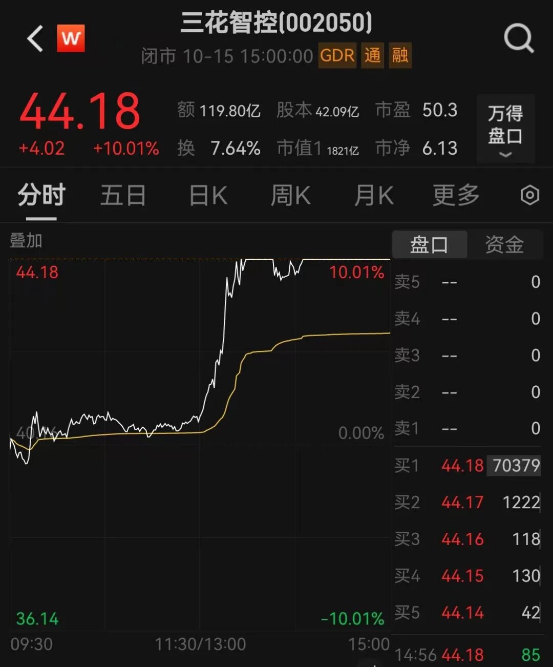 10月15日午后,三花智控突然异动拉升,收盘录得涨停。机器人概念股中,也有20多只股票涨停或涨幅超过10%。
