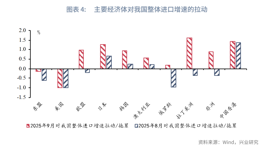 2025年9月我国出口同比录得8.3%,较前值上升3.9个百分点。