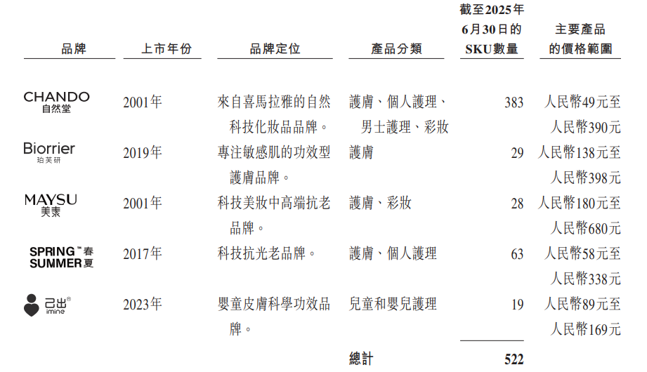 招股书显示,自然堂旗下五个品牌,定位多样,主要产品价格在49元至680元之间,下限和上限差距颇大。