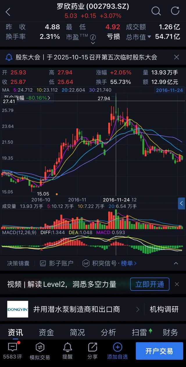 10月15日收盘,罗欣药业股价收报5.03元/股,较前一交易日上涨3.07%,最新市值54.71亿元。该股较其上市后27.94元/股的高峰时刻,已经缩水超81%。