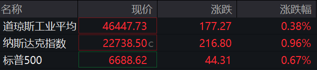 美股三大指数集体高开,道指涨0.38%,纳指涨0.96%,标普500指数涨0.67%。