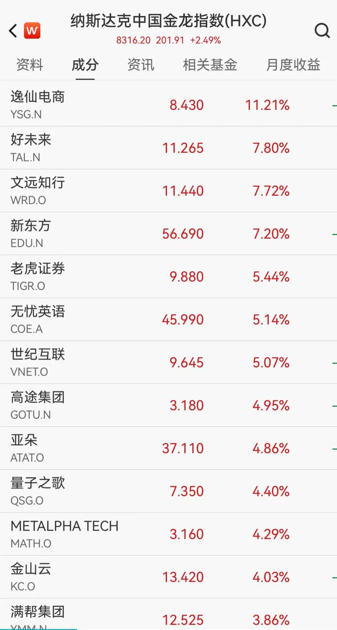 纳斯达克中国金龙指数涨逾2%,新东方、文远知行等大涨超7%,中概股科技龙头集体上涨,阿里、京东、百度涨超2%。