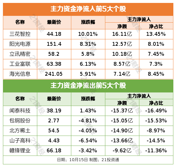 10月15日,市场探底回升,沪指涨超1%重回3900点,创业板指探底回升涨超2%。截至收盘,沪指涨1.22%,深成指涨1.73%,创业板指涨2.36%。沪深两市成交额2.07万亿,较上一个交易日缩量5034亿。