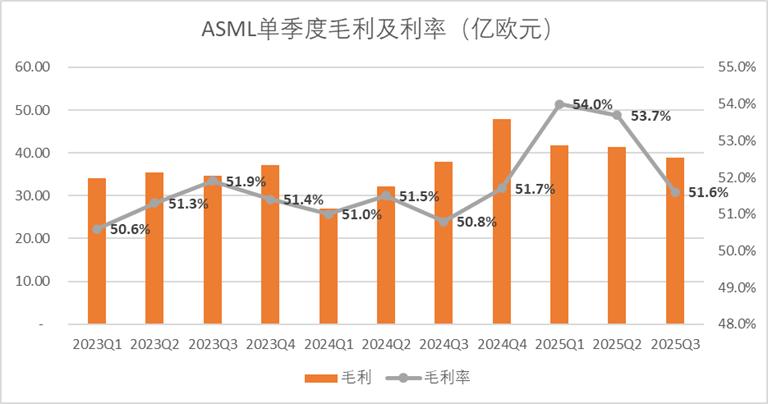 图:ASML单季度毛利及毛利率趋势,来源:企业财报,锦缎研究院整理