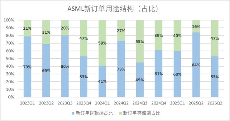 其实从新订单的结构也能够看出,三季度新订单中,End-use(最终用途)中逻辑类占比从84%降至53%,而存储类从16%,提升至47%。