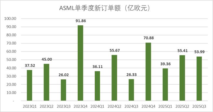 三季度ASML的新订单额达到了54亿欧元,高于市场预期49.7亿欧。