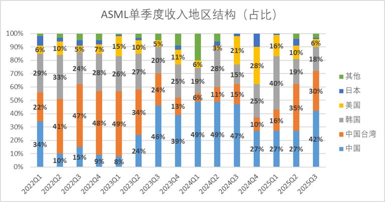 图:ASML单季度收入地区结构,来源:企业财报,锦缎研究院整理